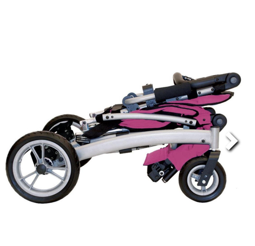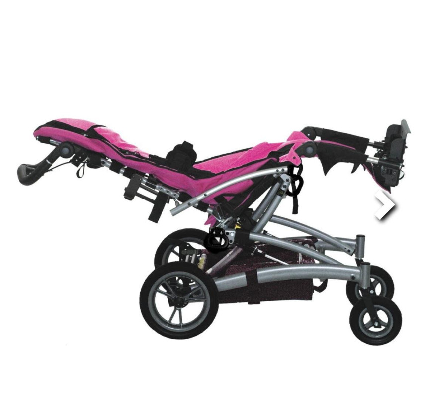 Silla de traslado y paseo, liviana y compacta con estructura de aluminio. Basculación ajustable entre 5° y 45°. Reclinación de respaldo regulable entre 90° y 110°. Butaca regulable en altura y profundidad para acompañar crecimiento del usuario. Controles de tronco regulables en altura y ancho. Tapizado de asiento y respaldo acolchado, extraíbles y lavable. Ajustable mediante straps permitiendo mayor o menor tensión de los mismos. Apoya brazos regulables en altura y rebatibles. Panel apoya pantorrillas. Apoya pies individuales, rebatibles y regulables en altura. Manillar de empuje única, regulable en altura. Freno único y manual mediante pedal monocomando. Ruedas traseras de 20cm con sistema de extracción rápida. Ruedas delanteras de 15 cm. Plegado frontal y compacto para mayor facilidad de transporte.